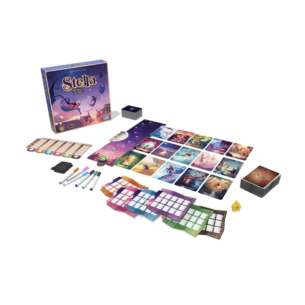 Stella používá karty Dixit, stejně jako každá hra ze světa Dixitu. Tyto velké ilustrované karty vám umožní komunikovat mnoha způsoby, záleží na daných hrách.