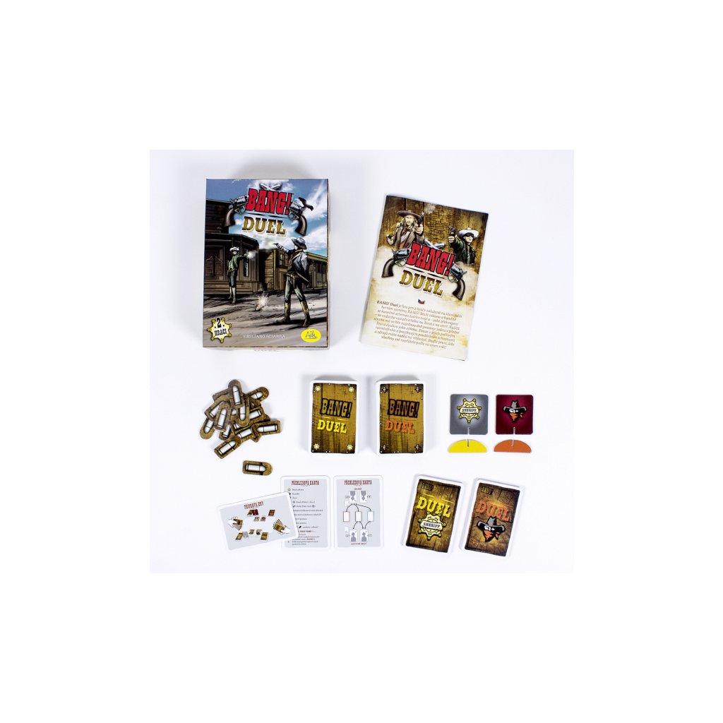 Bang Duel je samostatná hra pro dva hráče, ke které nepotřebujete základní hru Bang!. Hráči si rozdělí strany, za které budou hrát – muži zákona proti banditům. Zvítězí ostřílení strážci zákona nebo se jako poslední budou smát nelítostní bandité?