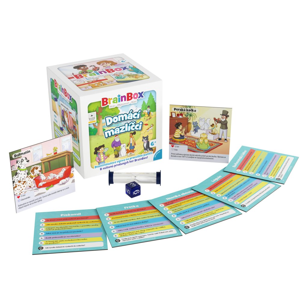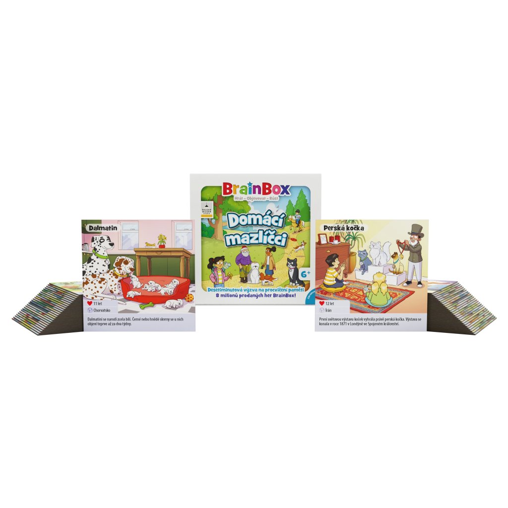 BrainBox je zábavná paměťová a postřehová karetní hra, která otestuje váš smysl pro detail. Odpovědi na všechny otázky máte přímo před sebou na kartě. Bude vám stačit 10 vteřin na to, abyste si všechno zapamatovali? Tato edice hry, věnovaná domácím mazlíčkům, vám představí velká i malá zvířátka, která obohacují náš život.Hra BrainBox Domácí mazlíčci obsahuje 55 hracích karet s ručně malovanými ilustracemi, které doslova oživí domácí mazlíčky na obrázkové straně karet.