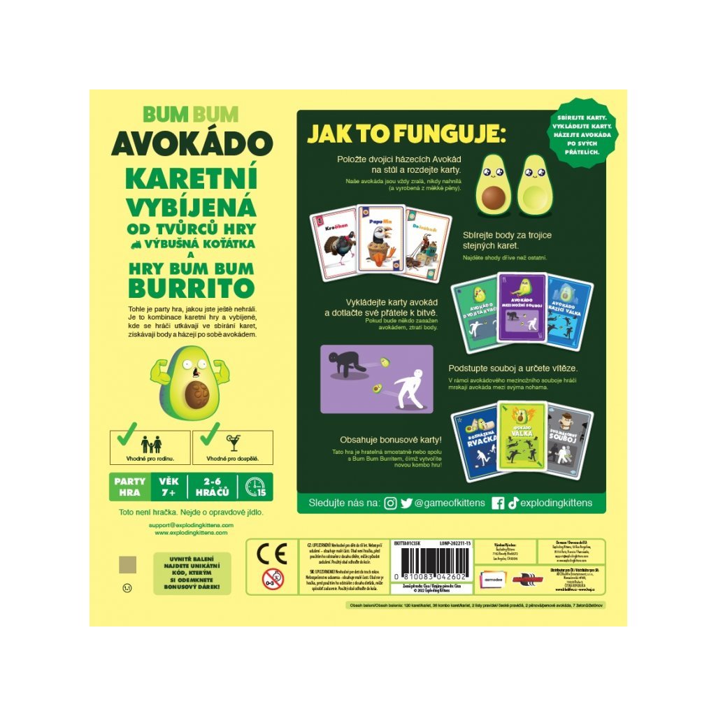- Vykládejte karty avokád a dotlačte své přátele k bitvě. Pokud bude někdo zasažen avokádem, ztratí body.