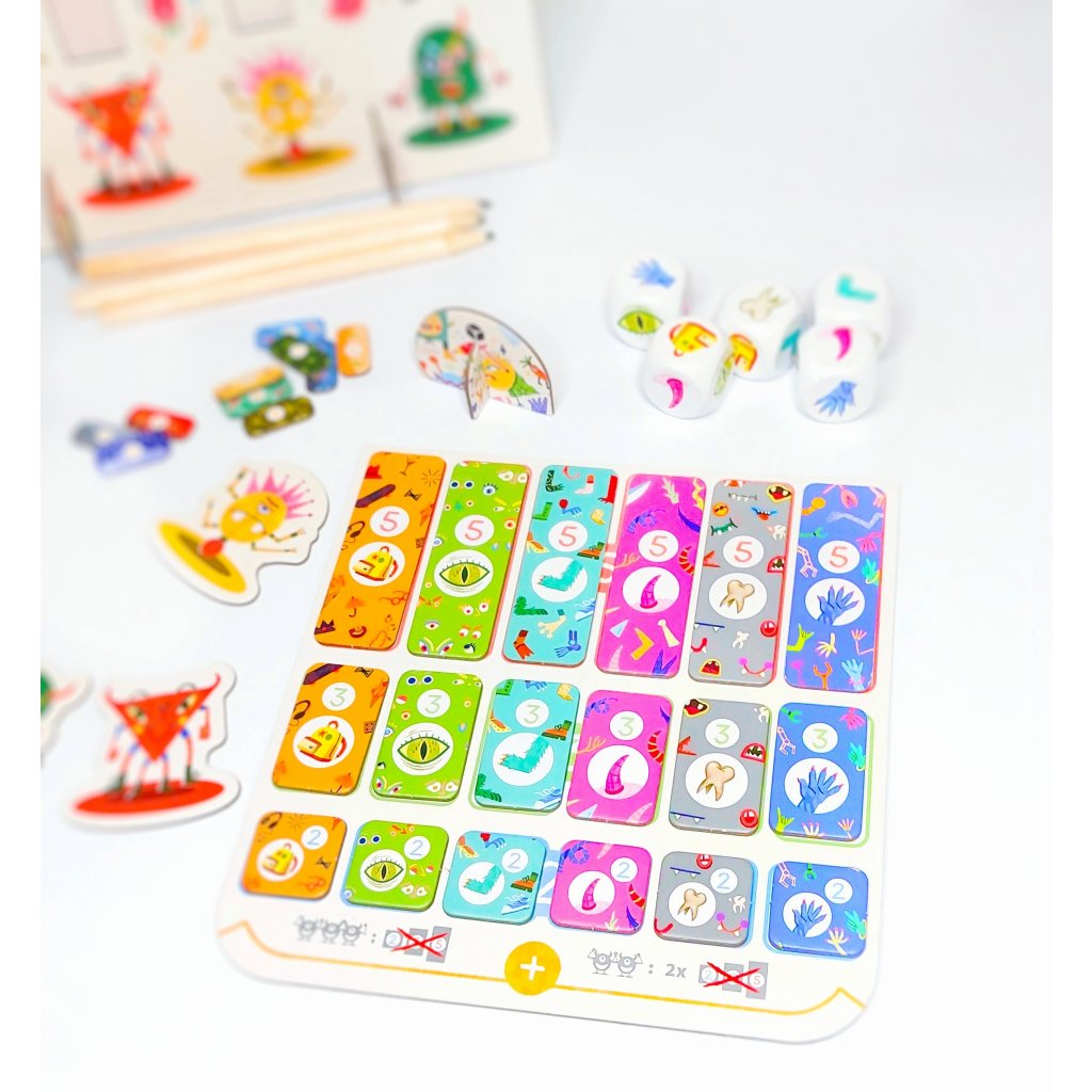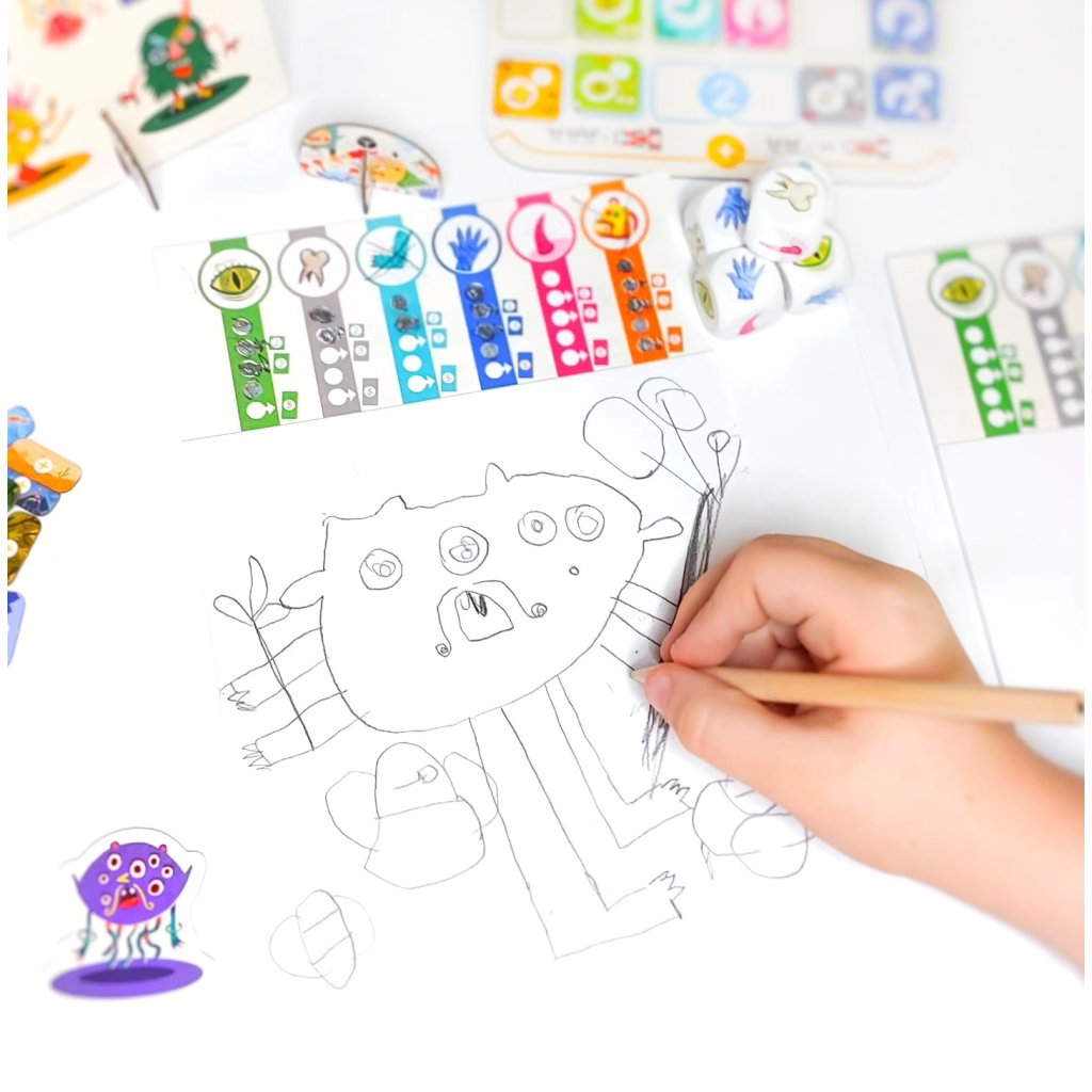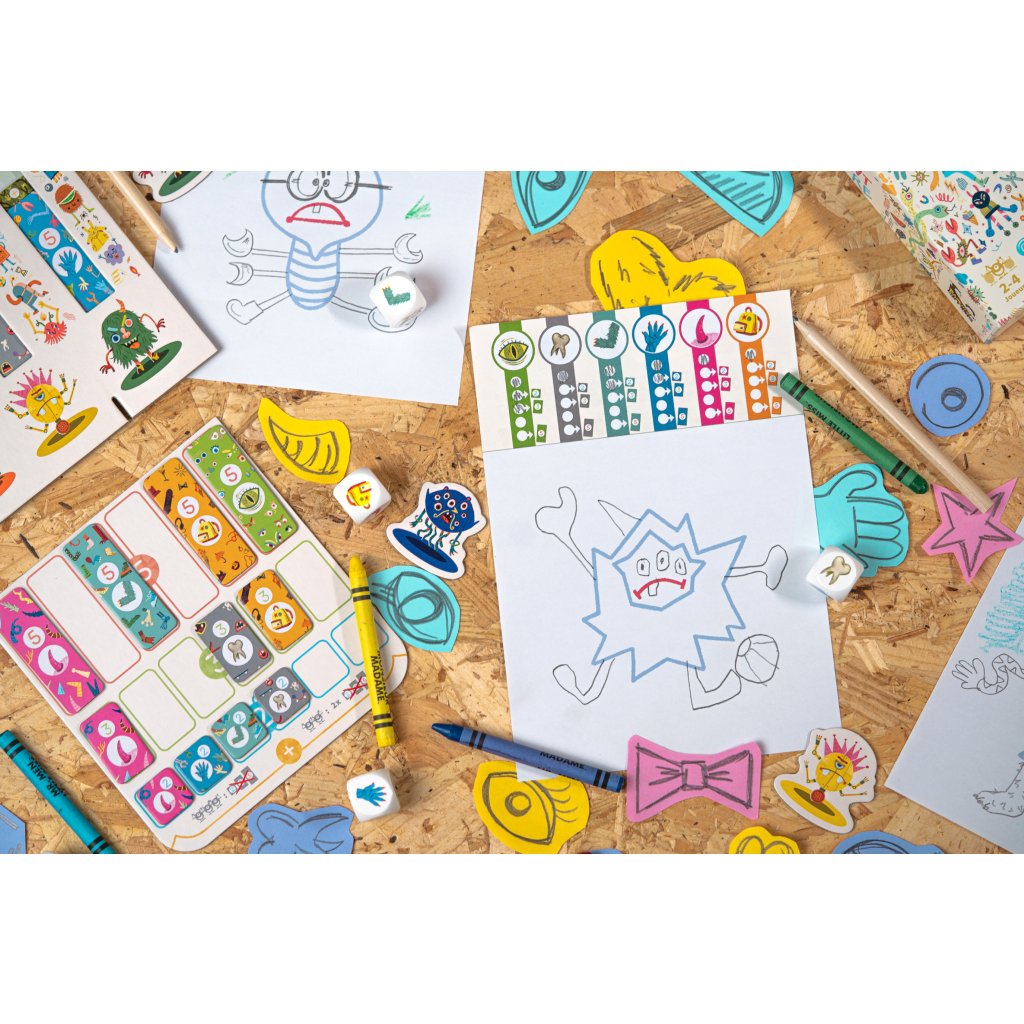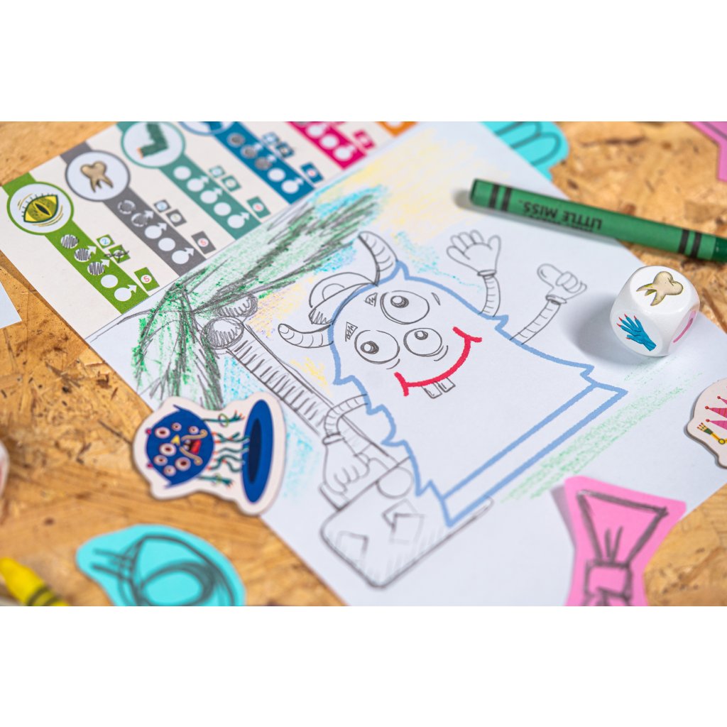 Postupně kreslete svou příšeru a zvyšujte si skóre na svém děsometru vkládáním žetonů příšery (zubů, rukou, nohou...).