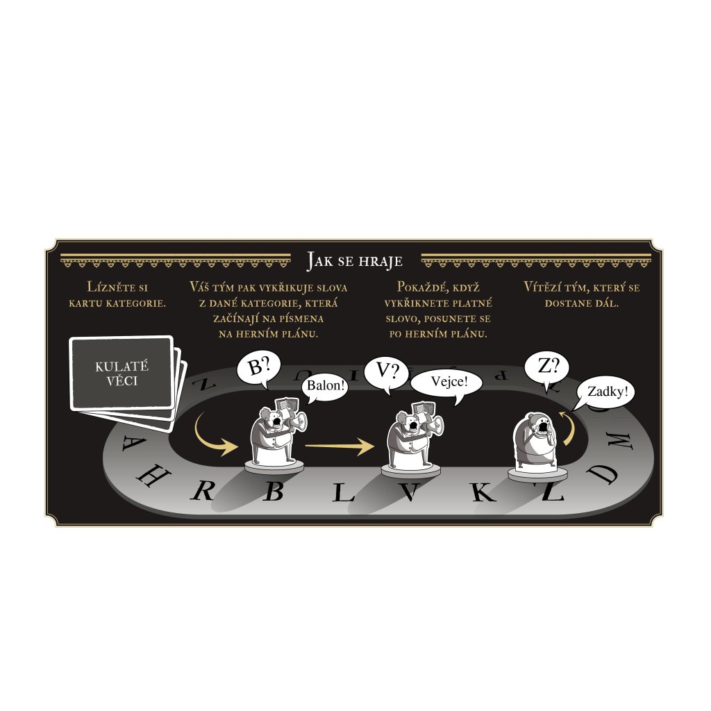 Ve zkratce - váš tým bude vykřikovat slova, která začínají na konkrétní písmeno a zapadají do určité kategorie. Počáteční písmena se změní pokaždé, když zakřičíte správnou odpověď, a pokud váš tým vymyslí víc slov než ten druhý, získáte body!