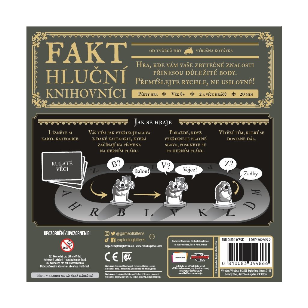 Další bláznivá párty hra od tvůrců hry Výbušná koťátka - to jsou Fakt hluční knihovníci! Hra, ve které vám vaše zbytečné znalosti přinesou důležité body. Přemýšlejte rychle, ne usilovně!O co vlastně v této hře jde?