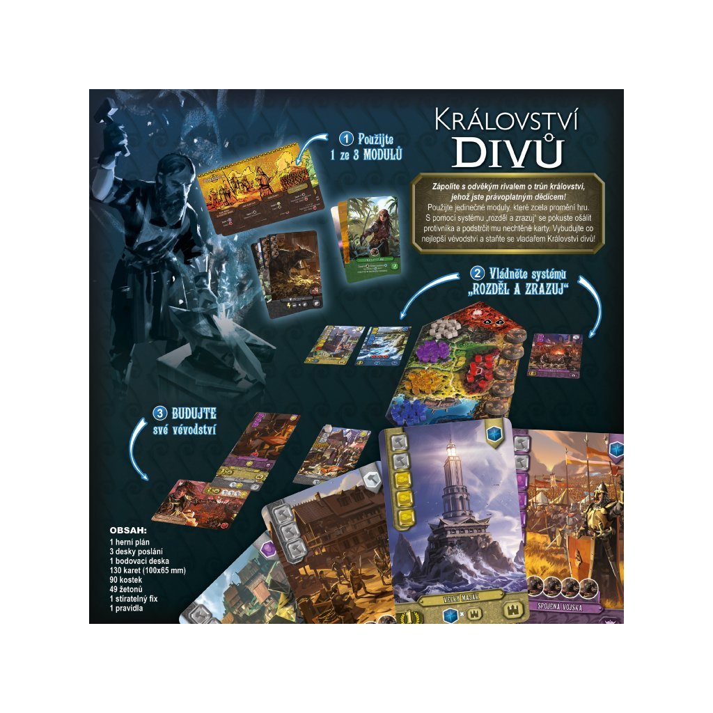 Ve hře Království divů budete zápolit o trůn skomírajícího království, kterému může navrátit někdejší věhlas a slávu pouze právoplatný dědic trůnu. Tím jste samozřejmě Vy. Jako budoucí vladař musíte prokázat schopnost učinit správná rozhodnutí, díky kterým se vaše vévodství rozroste rychleji a lépe než panství vašeho odvěkého rivala. Hra trvá 4 kola. V každém kole nabídnete a vyberete karty, s jejichž pomocí budete rozvíjet své vévodství. Jakmile máte karty, můžete některé z nich směnit a tak okamžitě získat prostředky, nebo je můžete postavit, načež vám budou prostředky či vítězné body poskytovat v každém kole. Na konci 4. kola se stane vítězem hráč s největším počtem vítězných bodů.