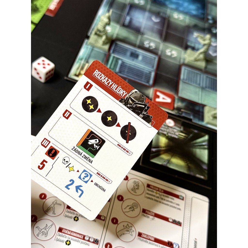 FOXHOUND obsadil zařízení na likvidaci jaderných hlavic Shadow Moses a hrozí odpálením jaderných zbraní, když nebudou splněny jeho požadavky. Vaším úkolem je infiltrovat Shadow Moses a zastavit teroristy dřív, než uvrhnou svět do jaderné války. METAL GEAR SOLID: DESKOVÁ HRA je kooperativní taktická špionážní akce s ikonickými postavami série Metal Gear. Pronikněte do Shadow Moses, kde vás čeká kampaň se 14 rozmanitými misemi, které nabízejí propracovaný systém plížení a soubojů. Budete v nich moci nenápadně obcházet hlídky nebo riskovat přímý střet, zatímco v misích s bossy budete muset čelit známým protivníkům ze světa Metal Gear. Buďte ve střehu! V balení hry najdete 3 knihy: - Kampaň Shadow Moses: Zažijte klasický Metal Gear Solid příběh. - Kniha VR misí: Tyto mise lze odehrát kdykoliv, abyste odemkli karty vybavení. Skvěle se hodí pro skupinky hráčů, kteří chtějí odehrát samostatnou misi místo kampaně. - Kodek: Zde můžete během mise vyhledávat číselné kódy a získávat dodatečné informace. Ve hře narazíte na 2 typy úrovní: - Infiltrační úroveň: Hráči se vyhýbají hlídkám, zatímco se snaží splnit cíl. Tyto úrovně jsou v první řadě o nenápadnosti. Hráči by se měli pustit do boje, jen když to bude absolutně nevyhnutelné. - Úroveň s bossem: Hráči bojují proti unikátnímu bossovi! Proč byste si měli hru koupit - Kooperativní systém podporuje skutečnou týmovou spolupráci, kde každý hráč přispívá svými schopnostmi k úspěchu celé mise a musí neustále reagovat na rozhodnutí ostatních. - Silná příběhová kampaň nabízí čtrnáct propojených misí, které postupně rozvíjejí známý příběh zcela novou formou a dávají hráčům prostor ovlivňovat jeho průběh. - Důraz na plížení a plánování vytváří napětí v každém tahu a nutí hráče přemýšlet několik kroků dopředu, místo spoléhání se na náhodu nebo hrubou sílu. - Variabilní herní mapy z oboustranných dlaždic zajišťují, že žádná mise nepůsobí stejně a každé nové rozehrání přináší jiné taktické výzvy. - Souboje s bossy přinášejí výraznou změnu tempa hry a vyžadují odlišný přístup než běžné infiltrační úrovně, včetně pečlivé koordinace týmu. - VR mise umožňují odehrát samostatné scénáře mimo hlavní kampaň a zároveň rozšiřují možnosti vybavení, které můžete následně využít v příběhu. - Kodek dodává hře další vrstvu informací, příběhových souvislostí a drobných detailů, které tematicky navazují na ikonický prvek původní videohry. - Kvalitní figurky a bohatý obsah balení podporují přehlednost hry i její vizuální stránku na stole, což oceníte zejména při složitějších misích. - Možnost hrát v jednom hráči umožňuje vychutnat si celý příběh i bez stálé herní skupiny, aniž by hra ztratila na hloubce nebo napětí. - Hra věrně pracuje s atmosférou série Metal Gear Solid a nabízí zážitek, který respektuje svůj předobraz, ale zároveň plně využívá možnosti deskové hry. OBSAH BALENÍ 5 figurek postav 5 figurek bossů 12 figurek hlídek 2 figurky kartónových krabic 16 oboustranných dlaždic 4 desky hráčů 6 desek bossů 1 deska hlídek 171 karet 225 žetonů 1 žeton hrozby 1 kniha pravidel 1 kniha s kampaní 1 kniha VR misí 1 KodekDoplňkové parametry