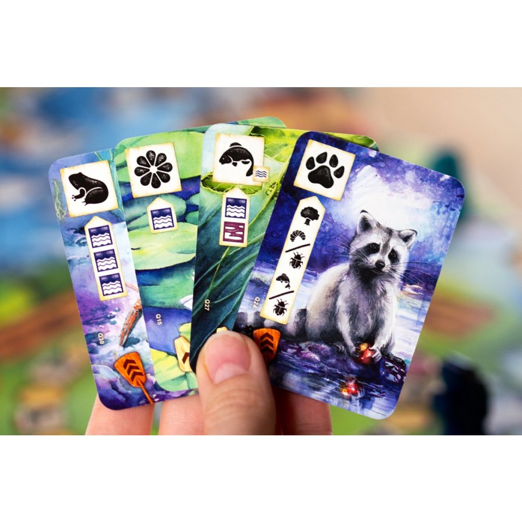 Na louce: Po proudu je rozšíření deskové hry Na louce. I v tomto rozšíření budete pokračovat v poznávání přírody, tentokrát z pohledu kajakáře. Čeká na vás objevování vodních rostlin a živočichů žijících v řekách, potocích a jezerech. Když budete dostatečně všímaví, neuniknou vám ani ryby plující v hloubce pod vámi, vydra skotačící v proudu, ani bobr stavějící si svou hráz.Kromě pozorování dostanete body také za vzdálenost, kterou na kajaku po řece urazíte. Na nejzdatnějšího kajakáře čekají dodatečné výhody, které mu mohou pomoci získat titul nejzkušenějšího pozorovatele.