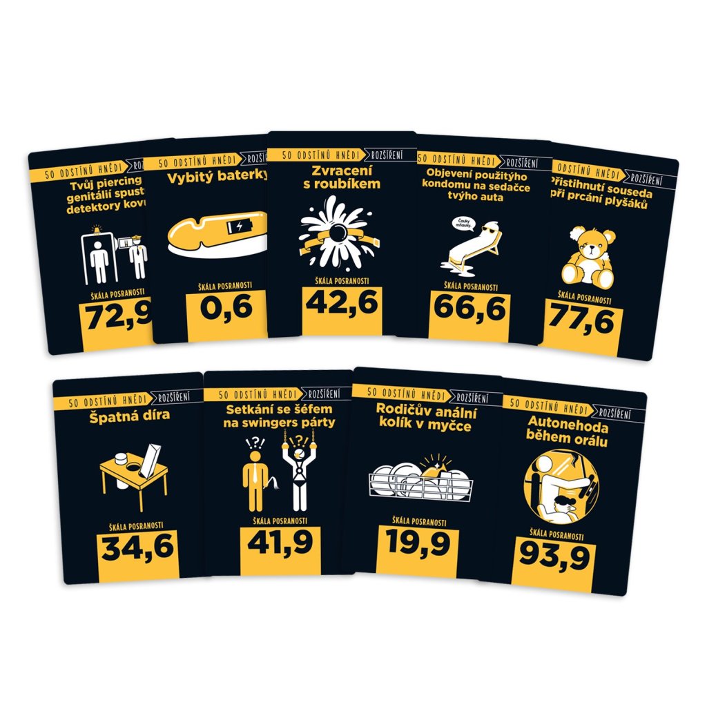 V téhle krabičce najdete fakt peprný situace, který budete hodnotit podle toho, jak moc jsou na hovno. Jsou příliš těsný spodky LEPŠÍ, nebo HORŠÍ než sledování 4hodinovýho školení o sexuálním harašení? Jsou HORŠÍ než obří cucflek na krku? Ohodnoťte situaci, a pokud se trefíte na správný místo na naší škále posranosti, můžete si kartu nechat. Když správně ohodnotíte 10 karet, vyhráváte.