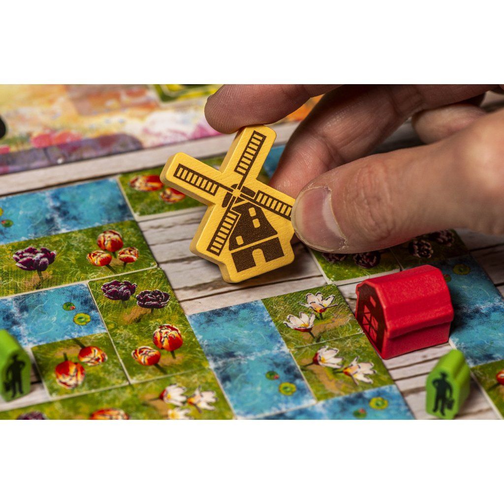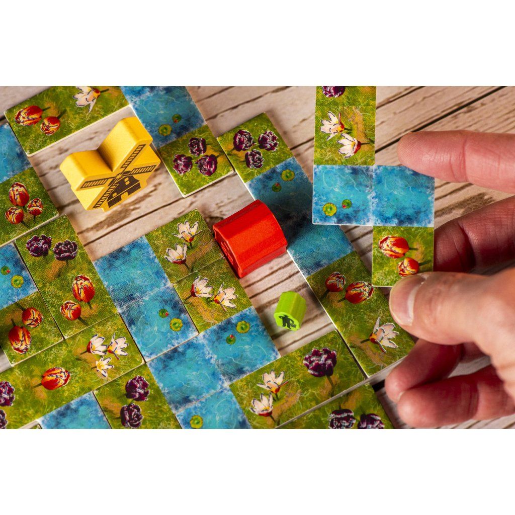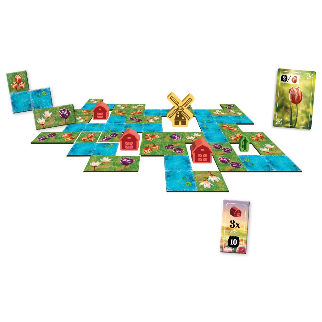Svěžím nizozemským vzduchem se nese přetrvávající zimní chlad, který zdobí probouzející se poldry ranními mrazíky. Pod tímto pomíjivým třpytivým nánosem vzhlíží k nebi první odhodlané tulipány, jejichž výrazné barvy zvěstují příchod jara. Jako ambiciózní zahradníci soutěžíte o to, kdo vypěstuje nejrozmanitější směsici tulipánů. Pečlivě vybírejte dílky a strategicky rozmisťujte ikonické větrné mlýny, robustní stodoly a pilné pracovníky, abyste vytvořili harmonickou a hodnotnou krajinu. Ve hře Třpytivé květy hráči během 10 kol soutěží o vytvoření nejhodnotnější tulipánové zahrady. Ve svém kole si vyberete dílek krajiny, přidáte ho do své zahrady a zahrajete z ruky kartu, která vám přinese vítězné body v závislosti na umístěném dílku. Chytrým umisťováním dílků vytvořte oblasti pro umístění pracovníků, stodol a větrných mlýnů. Ti vám spolu s úkoly, které splníte během hry, přinesou při závěrečném bodování další body navíc. Hráč, který nasbírá nejvíce bodů, zvítězí. Obsahuje sólo mód Mistr zahradník. V tomto sólo módu vyzvete na souboj Mistra zahradníka. Mistr zahradník je automa, která zná tajemství, jak vytvořit perfektní zahradu. Hraje podle svých vlastních pravidel. Pokud budete mít na konci hry více bodů, prozradí vám své tajemství a vy se stanete novým Mistrem zahradníkem. Proč byste si měli hru koupit -Nabízí přístupná pravidla, která se snadno vysvětlují, ale přesto poskytují dostatek prostoru pro promyšlené plánování a dlouhodobou strategii. - Spojuje skládání dílků s chytrým bodovacím systémem, který vás nutí přemýšlet nad každým umístěním a jeho návazností. - Každá zahrada se vyvíjí jinak, takže každá partie působí odlišně a podporuje opakované hraní. - Mechanismus výběru dílků pomocí žetonu květiny vytváří zajímavá rozhodnutí mezi investicí mincí a ideálním tvarem dílku. - Karty krajiny přinášejí variabilní bodování a nutí hráče reagovat na aktuální podobu své zahrady. - Vylepšení v podobě pracovníků, stodol a větrných mlýnů dávají hře další strategickou hloubku a jasný cíl pro závěrečné bodování. - Úkolové dílky odměňují různé herní styly a umožňují zaměřit se na odlišné způsoby bodování. - Sólový mód Mistr zahradník umožňuje plnohodnotné hraní i bez spoluhráčů a představuje systematickou výzvu. - Kratší herní doba zajišťuje svižné tempo a možnost zahrát si více partií za sebou. - Téma pěstování tulipánů je zpracováno přehledně a srozumitelně, takže hra působí příjemně i při opakovaném hraní. Obsah balení: 1 herní deska 48 dílků krajiny 45 dřevěných vylepšení 21 úkolových dílků 1 žeton květiny, 4 bodovací žetony 40 mincí 1 látkový pytlík 59 karet 1 bodovací bloček česká pravidlaDoplňkové parametry