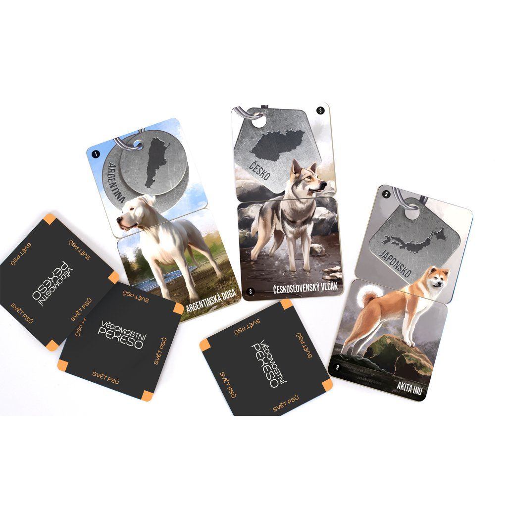 Hra vychází z klasického pexesa. Nehledají se však dva stejné obrázky, ale dvě informace, které k sobě patří. Díky vědomostnímu pexesu si můžete oživit znalosti ze světa psů. Hra obsahuje: 48 kartiček (tj. 24 párů).Doplňkové parametry